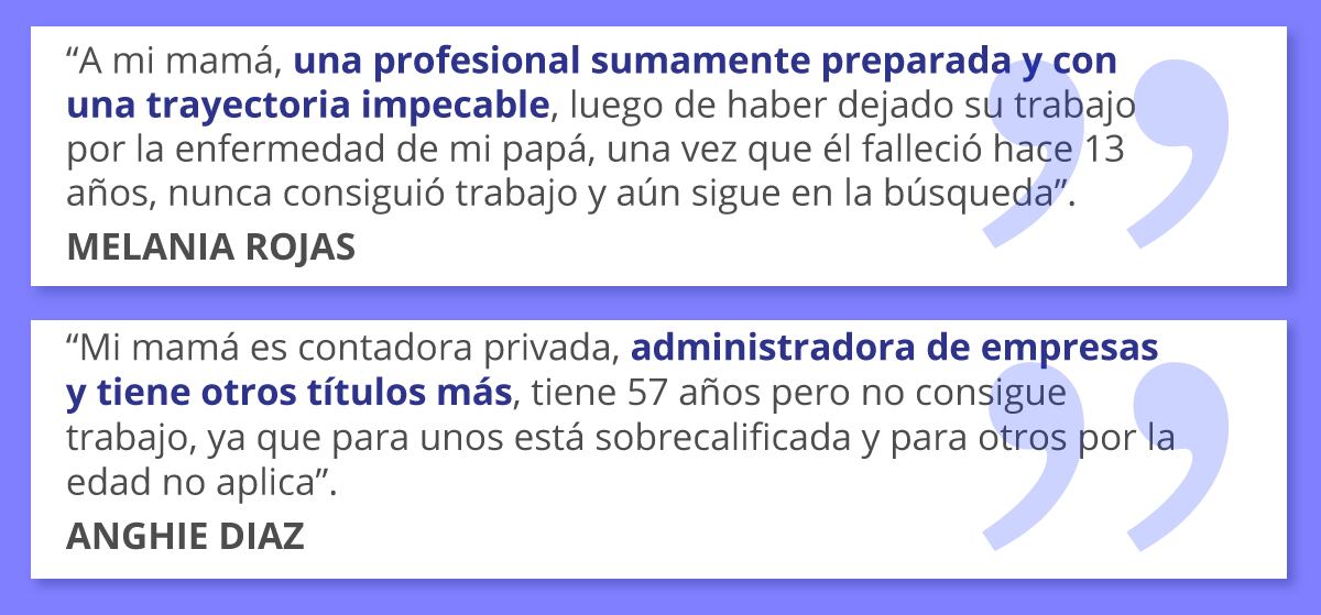 "Aunque fuera una persona superexperimentada en puestos de mucha relevancia, con poder de negociación y con cierto renombre a nivel del gremio de alimentos, me fue imposible (...) fue muy triste porque me sentía joven y capaz, pero por la edad, la gente daba por un hecho que yo inmediatamente me iba a pensionar, y ni siquiera me preguntaban", contó Solano.