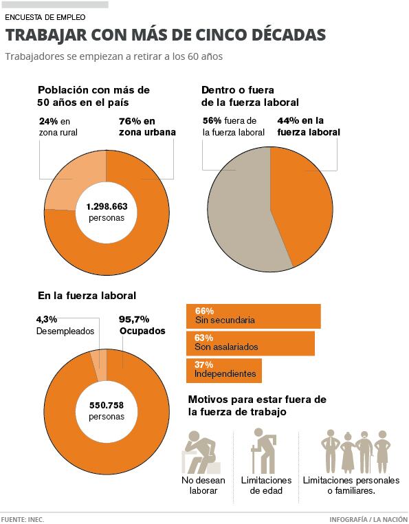 Sin embargo, el problema no es visible en las estadísticas oficiales. De acuerdo con la Encuesta Continua de Empleo elaborada por el Instituto Nacional de Estadística y Censos (INEC) para el segundo trimestre del 2017, el desempleo de la población mayor de 50 años es de un 4,3% (unas 24.500 personas) muy por debajo del 8,5% nacional.