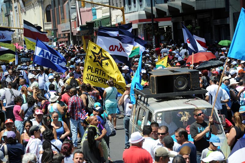 Los sindicatos marcharon en febrero del 2014 contra el aumento del 0,43% decretado por el Gobierno. | ALONSO TENORIO/ARCHIVO (Alonso Tenorio)