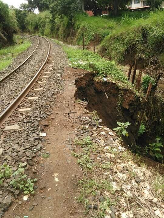 El socavamiento no afecta (por ahora) la línea férrea. (Tomado de Twitter @TaxistaSJ)
