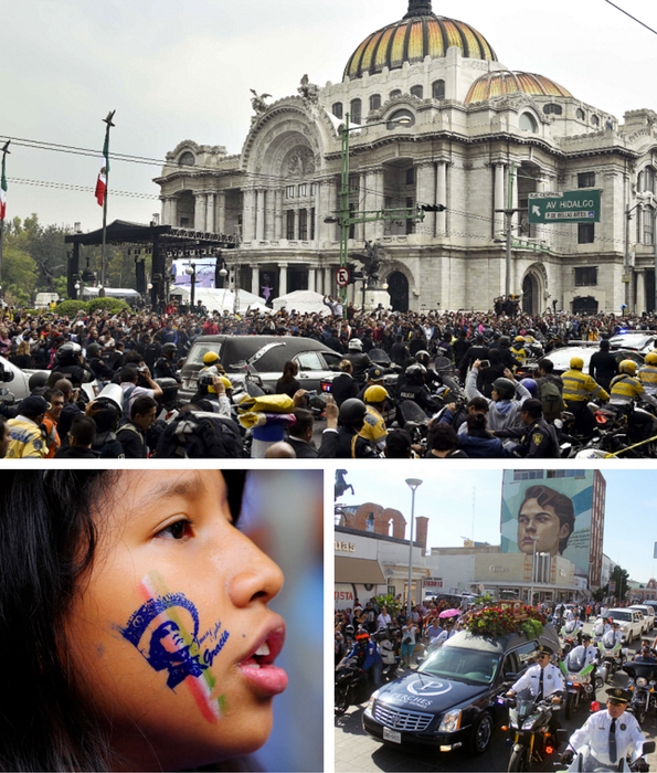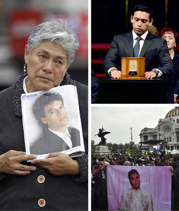Las cenizas del superastro de la música mexicana cruzaron la capital el lunes por la tarde ante la mirada de miles de seguidores que saludaban a la carroza fúnebre hasta que ésta llegó al más importante recinto de la cultura del país.