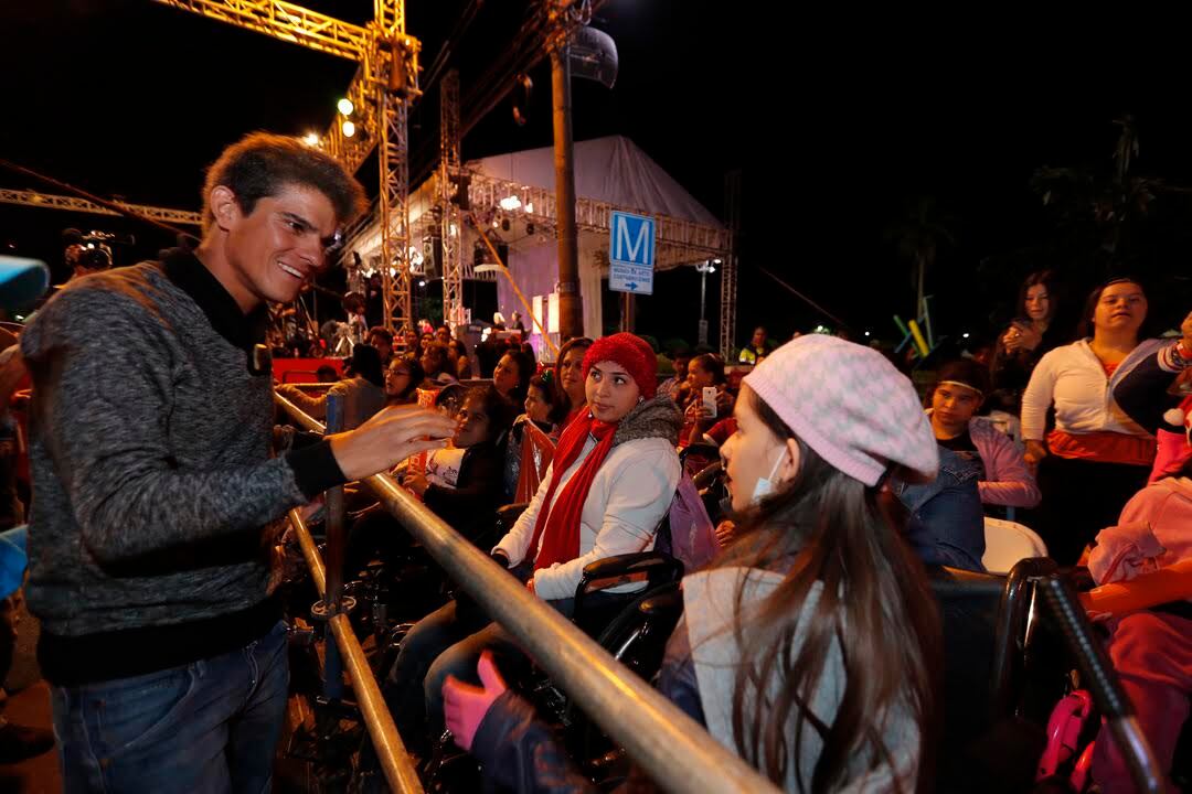 Los ojitos brillantes de los pequeños asistentes resplandecieron más cuando el deportista –quien este año se impuso como ganador en una de las carreras del Giro de Italia– se acercaba y tocaba sus manos; las agudas voces de los niños resonaban cuando pedían a sus papás una foto.
