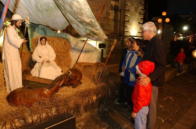 Una escena navideña típica de Costa Rica incluye villancicos, un pesebre y un tamal con un café caliente.