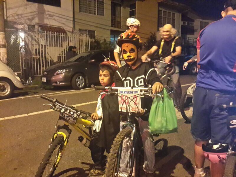 Esta noche varios fiebres de las bicicletas se reunieron en San Pedro para hacer una cleteada por las calles del cantón de Montes de Oca vestidos con disfraces en la primera Cleteada Mascarada nocturna que realiza la asociación ARCA.