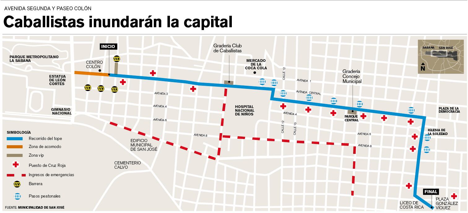 Además, la seguridad pública tendrá más de 700 policías para vigilar el paso de los caballistas, que se espera culmine después de las 6 p. m.