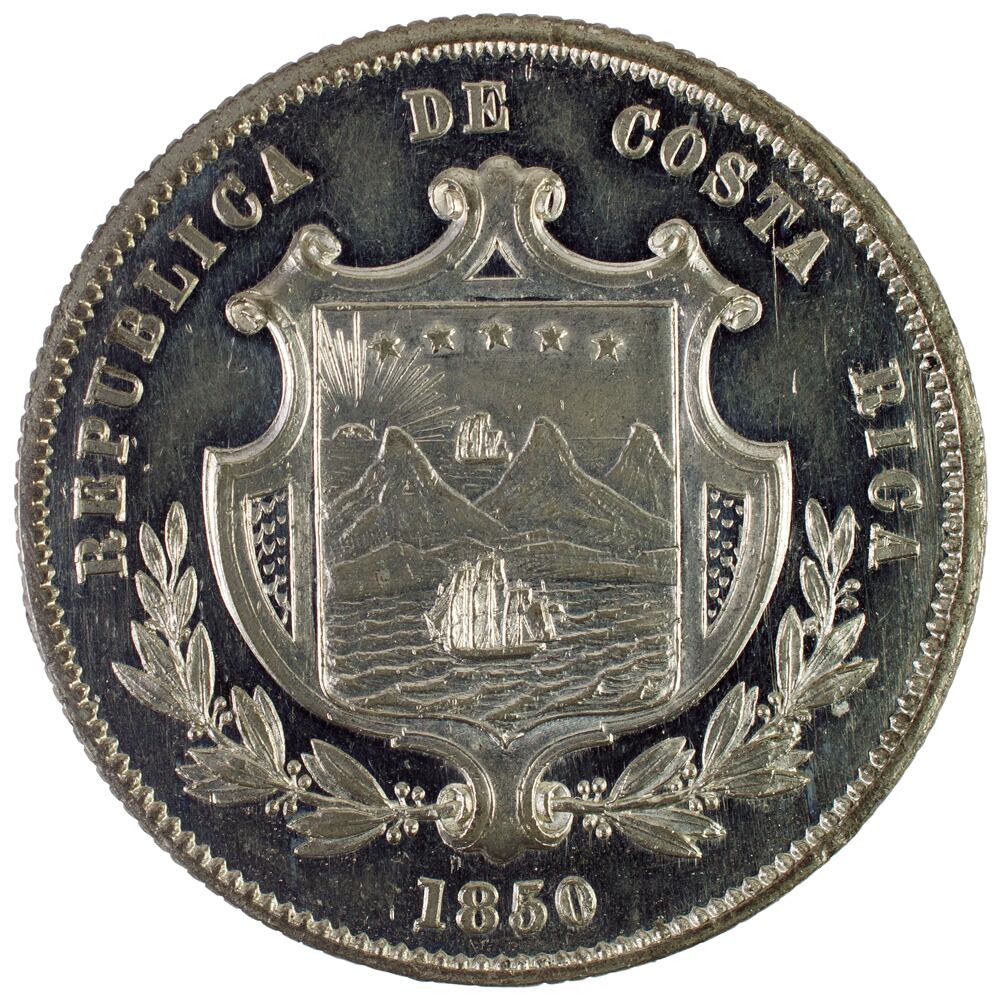 De esta propuesta surgió, en 1850, una de las monedas más bellas que ha tenido el país: una “India” de pie, cuyos atributos se componen de un arco, carcaj y flechas, apoyada con el brazo izquierdo en un pedestal, el cual tenía la inscripción “15 de setiembre de 1821”, fecha oficial de nuestra independencia. Actualmente, para el deleite de sus visitantes, los Museos del Banco Central tienen en exhibición esta hermosa pieza numismática, en la muestra titulada La figura femenina en las monedas y billetes de Costa Rica .