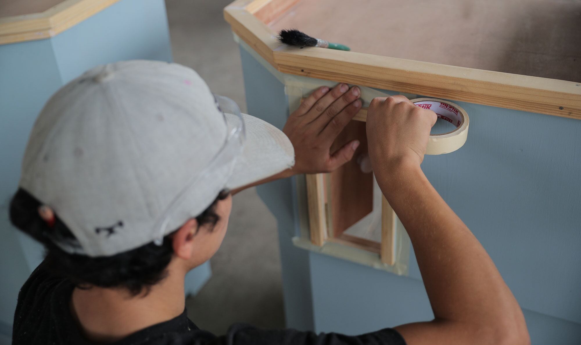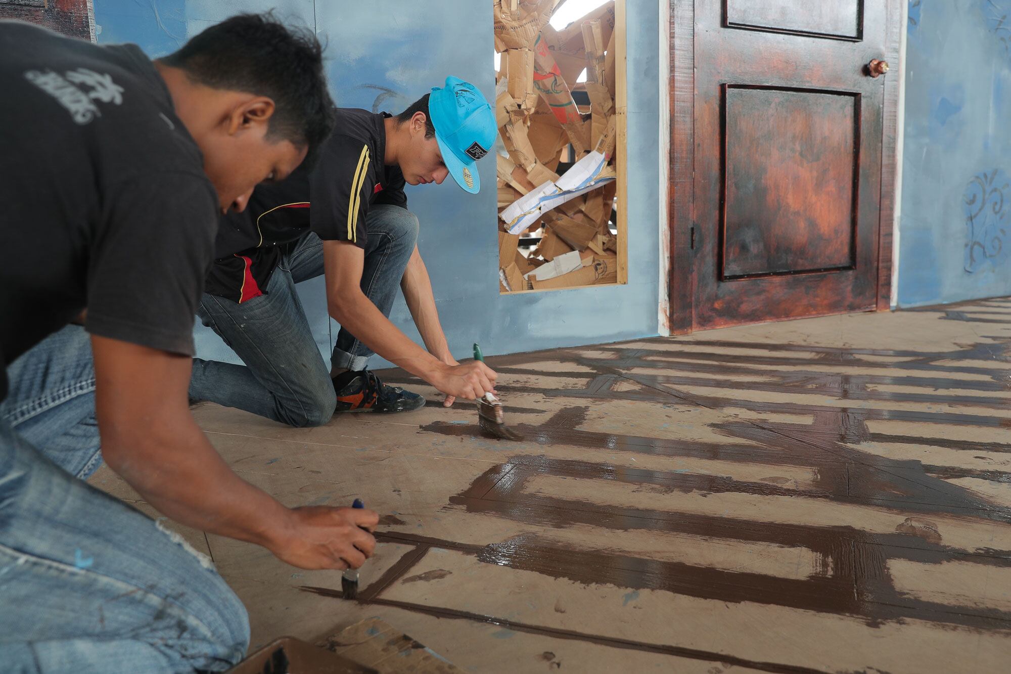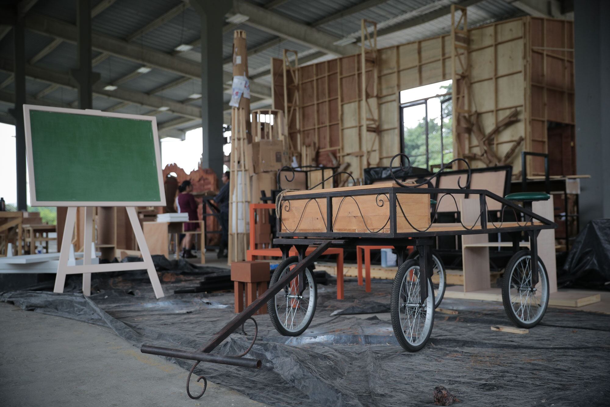 Fausto Delgado, 22 años, es uno de los operarios del Centro Artístico y Producción Cultural (CPAC) que trabaja en la utilería del FIA. (Jeffrey Zamora. )