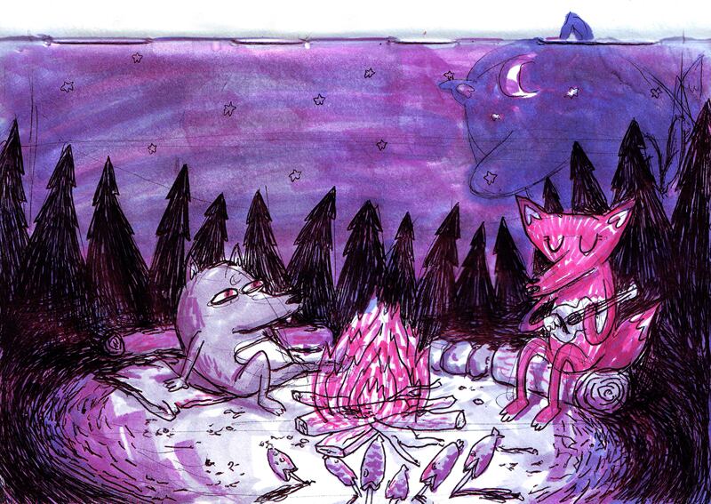 Un compa que vio los bocetos del cuento hace unos meses, me pregunta frecuentemente por Fausto: me dijo que ese zorro podía cambiar el mundo. Algún día, mi querido Fausto verá la luz; por mientras, sigo dibujándolo en diferentes lugares para que conozca muchos y así pueda contar más historias.