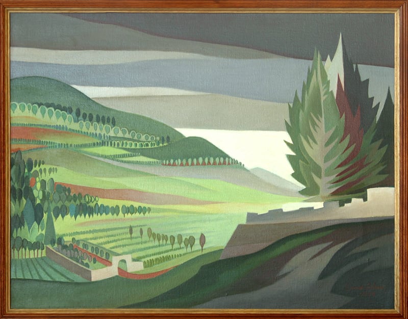El óleo Cementerio de Escazú es una de las piezas que la artista dedicó a ese lugar. Son obras coloridas, ingenuas y hermosas, y en alguna de ellas se percibe la influencia de Fausto Pacheco, maestro de Bolandi. La historiadora del arte Ileana Alvarado encuentra también influencias del paisajista estadounidense Grant Wood (libro Dinorah Bolandi; BCCR y UCR, 2013).