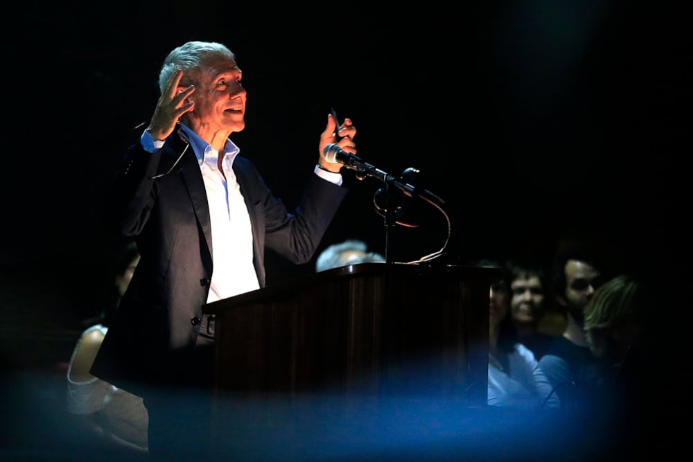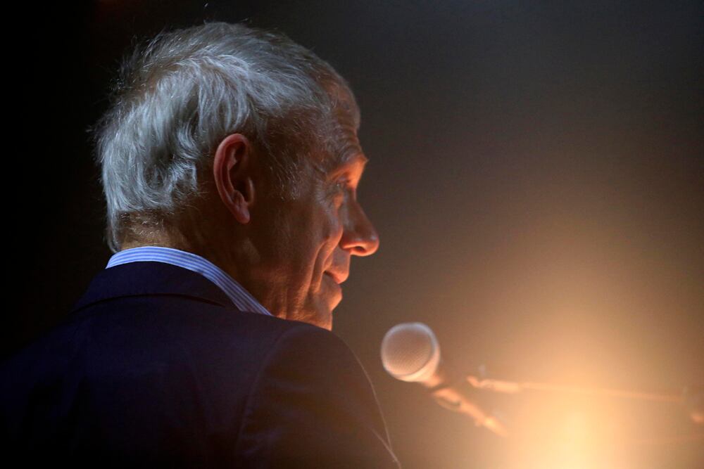 Pero falta más. Mientras habla está firme en el podio, delgado y más bien bajito, pero elegante en traje azul, con voz de cadencia italiana y la ocasional erre tica. No deja de mover el pie izquierdo como un metrónomo.