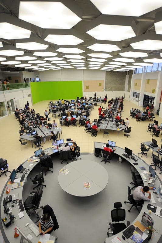 Más de 560 personas en un área de 4.600 metros cuadrados. Tres diarios, un semanario, decenas de revistas de todo tipo y ... mucha acción “en tiempo real”.