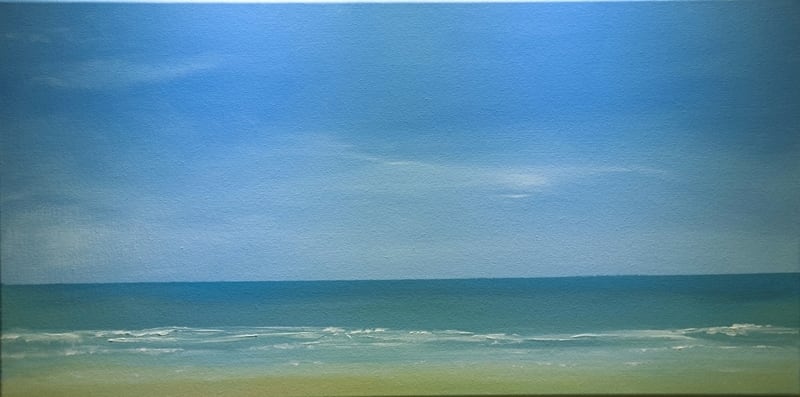 ‘Paisaje marino’, una de las once obras homónimas de Miguel Casafont . El artista confiesa sentir afición por el agua como elemento plástico. Fotografía: Fabián Hernández. (Fabian Hernandez)