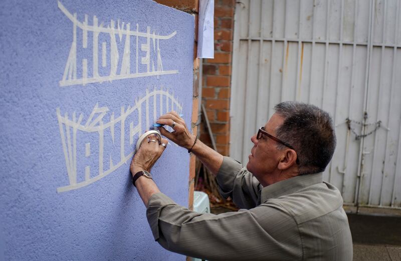 –Hace 35 años, trabajaba con un señor que me llevaba para que lo ayudara a pintar. Él hacía letras, las cuadraba, y, después, yo se las tenía que rellenar”, dice.