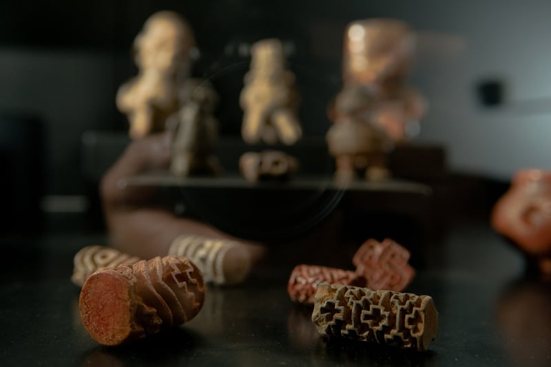 La colección se expone junto con creaciones de otras partes de Mesoamérica, de donde heredamos las técnicas de trabajo en jade. Según explica Novoa, pueblos olmecas o mayas trajeron esta piedra alrededor de 500 a. C. En Costa Rica no hay yacimientos del mineral.