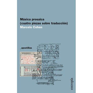 Marcelo Cohen (Buenos Aires, 1951). Música prosaica (cuatro piezas sobre traducción) . Ensayo. Entropía 2014. 86 páginas. A la venta en las librerías Duluoz y Buhólica.