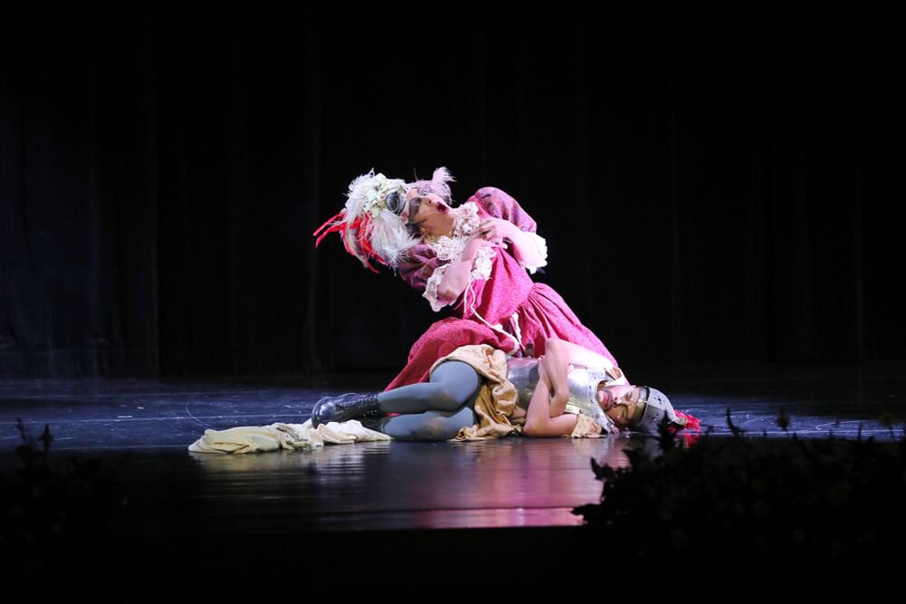 Dos actores de la puesta en escena de Sueño de una noche de verano interpretaron una divertida escena protagonizada por Píramo y Tirse, la cual le sacó las carcajadas a la audiencia conformada por invitados especiales y familiares de los premiados, así como autoridades de las artes y la cultura nacionales.