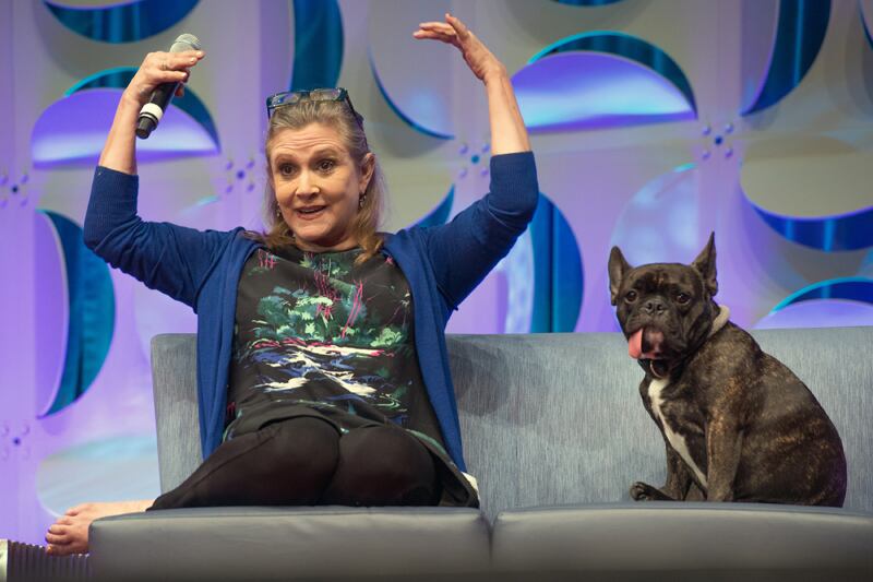 Fisher compartió con fanáticos de la legendaria serie de películas durante el segundo día de la convención de Star Wars , que se celebra en Anaheim, California.