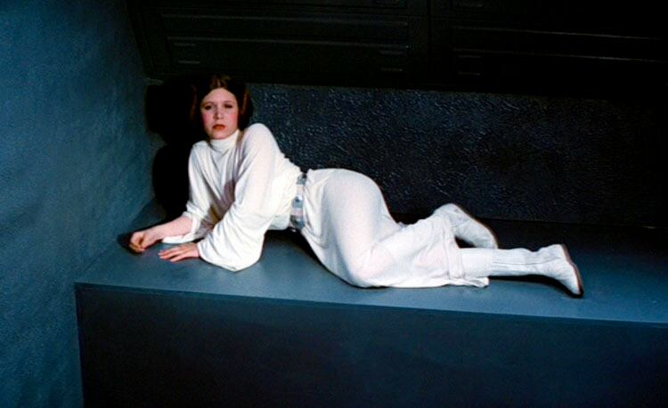 El molde de la narración de Star Wars parece tratarse también sobre la "damisela en peligro" típica de incontables cintas de aventura. La princesa debe ser rescatada de la fortaleza oculta (como en la película de Akira Kurosawa que prefigura Star Wars) donde un villano la retiene, y un príncipe descastado debe correr en su ayuda para encontrarse y reclamar su verdadero honor y poder. Pero Carrie Fisher era desde el principio demasiado grande para limitarse a ello, y ya desde los primeros minutos ella es, evidentemente, quien lidera las fuerzas del "bien" contra el "mal", un papel rara vez concedido a una mujer. No es pura ni santa; es imperfecta, respondona y aguerrida. Sí, arrastra colas de tela y el peinado debe quedarse en su sitio toda la cinta, pero es claro, al final de Star Wars, que es ella quien manda.