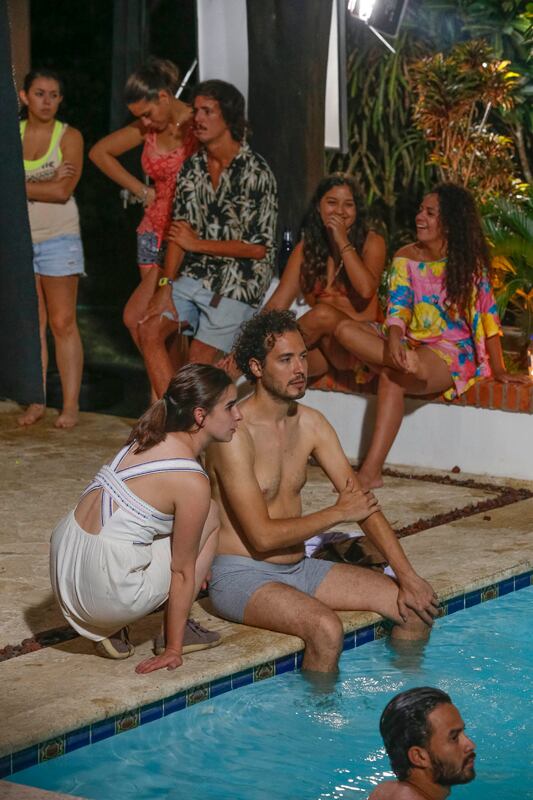 En las primeras escenas que se rodaron allí hubo fiesta, amor y uno que otro piscinazo. ¡Sobró cerveza y hasta llovió un poco de “nieve”! Todo eso pasó de 5 de la tarde a 5 de la mañana; por eso, hubo que sortear el sueño.