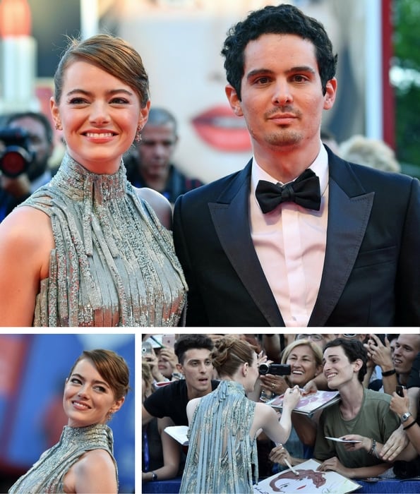 Las estrellas respetaron en cambio la tradición de desfilar por el tapete rojo que conduce al Palacio del Cine, entre ellas la gran protagonista de La La Land de Chazelle, la actriz Emma Stone, con un notable traje de lentejuelas brillantes.