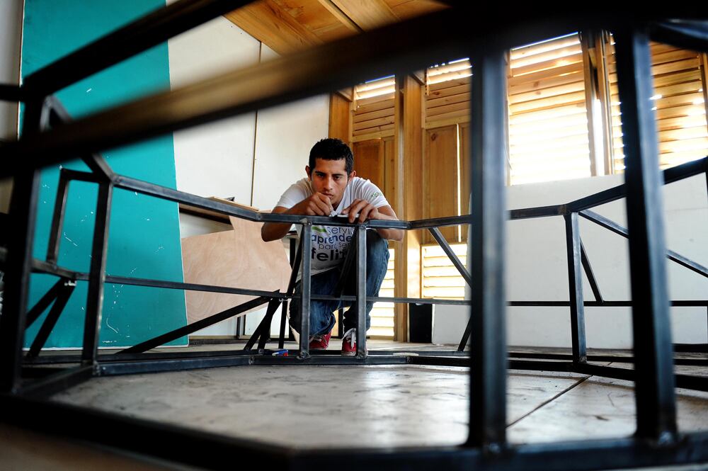 El artesano que une y finaliza las piezas, Yader Avilés, trabaja en construcción desde los 15 años cuando ocupaba el dinero para financiarse un puesto en un equipo de fútbol local.