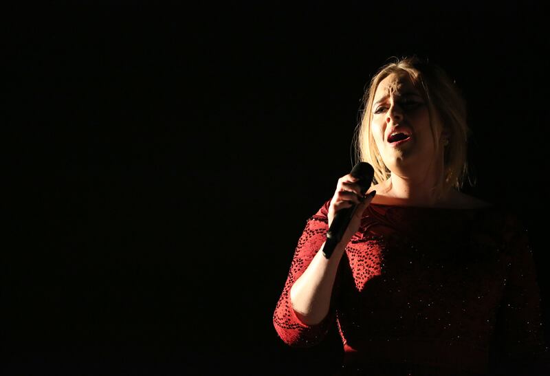 La cantante británica interpretó la canción All I Ask acompañada de un piano, pero la caída de un micrófono en las cuerdas del instrumento hizo que un sonido similar al de una guitarra retumbara en todo el Staples Center en Los Ángeles, California.