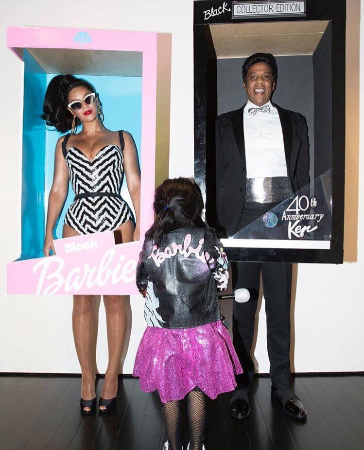 La pareja compartió en Instagram una foto la madrugada del martes en las que aparecen cual muñecos dentro de cajas extragrandes con las descripciones Barbie Negra y Ken Negro. Su hija de 5 años, Blue Ivy, los acompaña con una chaqueta de cuero de Barbie.