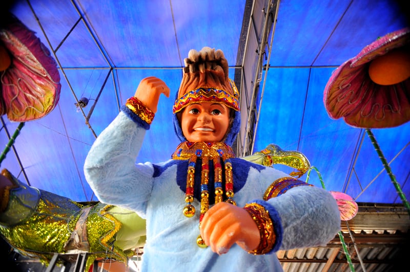 Los materiales que se utilizaron para construir esta carroza fueron 20 metros de estereofom, 400 metros de telas decorativas, 80 kilos de escarcha además de madera, hierro y figuras vestidas.