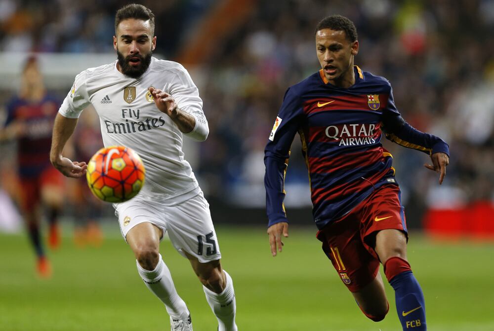 Dani Carvajal (izquierda), del Real Madrid, marca al atacante del Barcelona Neymar en el clásico español, en noviembre del 2015. ( AP)