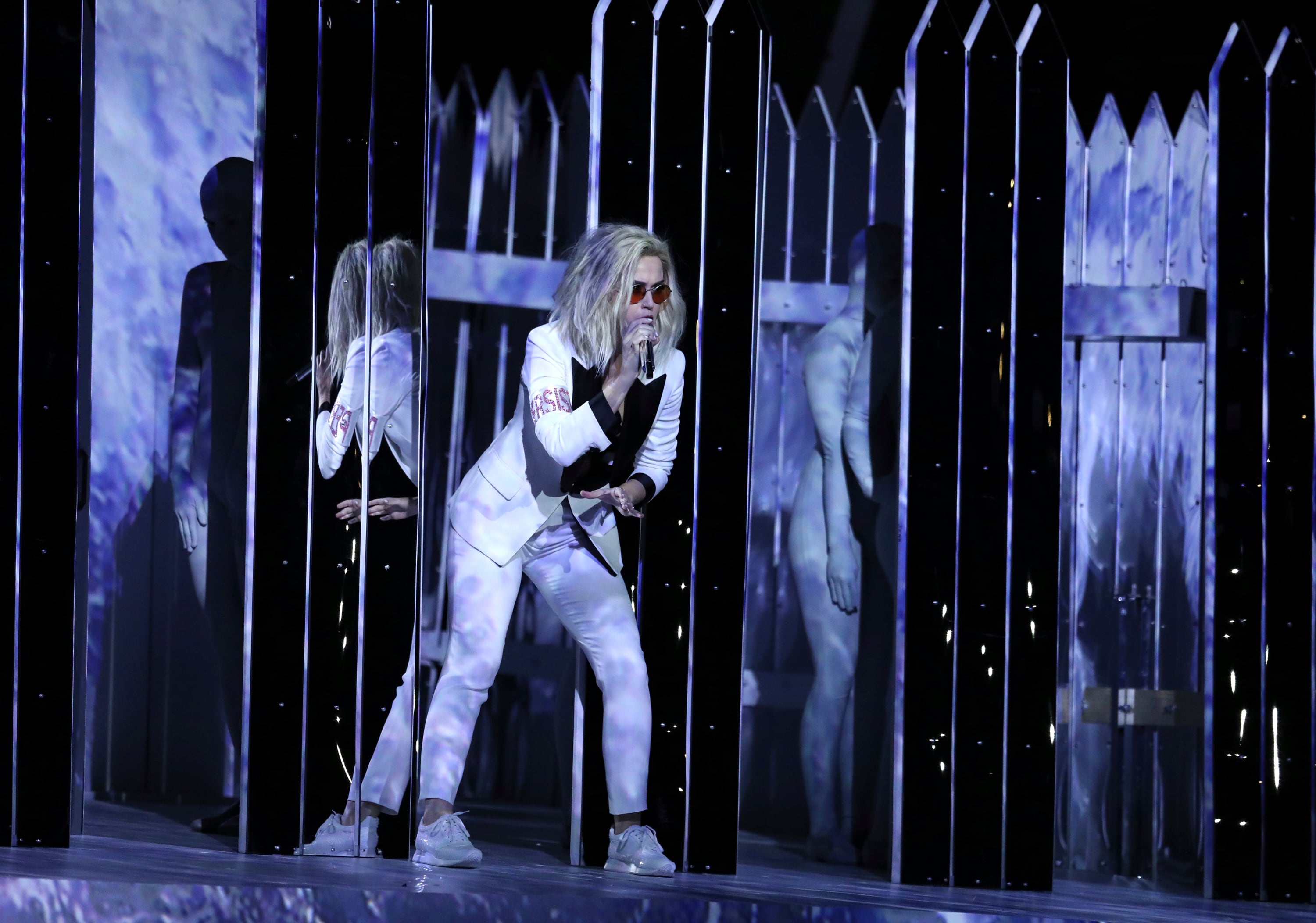 Con un muro construido de cerca blanca, la cantante Katy Perry hizo evidente las referencias políticas de su nuevo sencillo Chained to the Rhythm. La cantante era una de las presentaciones más esperadas de los premios Grammy.