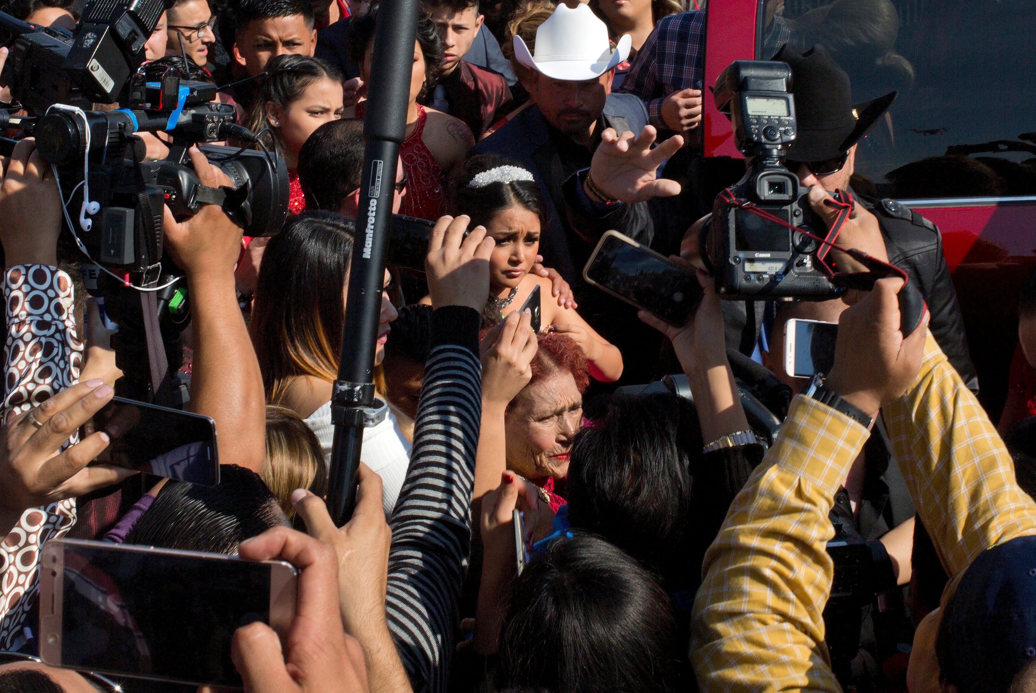 Rubí Ibarra, con un pomposo vestido de falda fucsia y corpiño bordado y una brillante diadema, no podía ocultar su angustia y con dificultades para caminar mientras su familia le abría paso entre decenas de fotógrafos que querían inmortalizarla al llegar a la misa por su quinceaños, en un llano entre las montañas del centro de México.