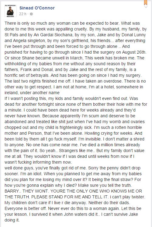 Sinéad O'Connor se recupera de una sobredosis