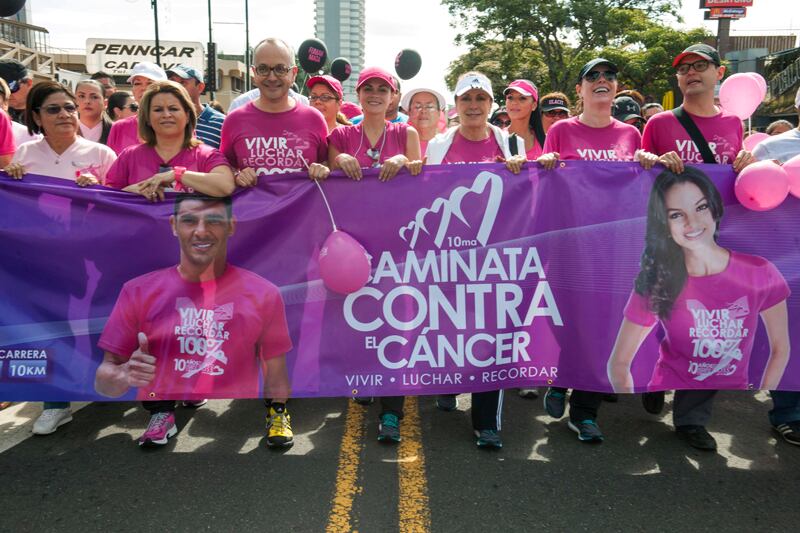 Al lado de adultos mayores, niños, jóvenes, hombres, mujeres y muchas mascotas, las actrices mexicanas Laura Zapata y Azela Robinson, acompañadas por la puertorriqueña Laura Carmine y el presentador colombiano Juan Carlos Arciniegas, de CNN, hicieron –vestidos de rosado– la caminata desde el parque de La Merced hasta el Estadio Nacional en La Sabana.