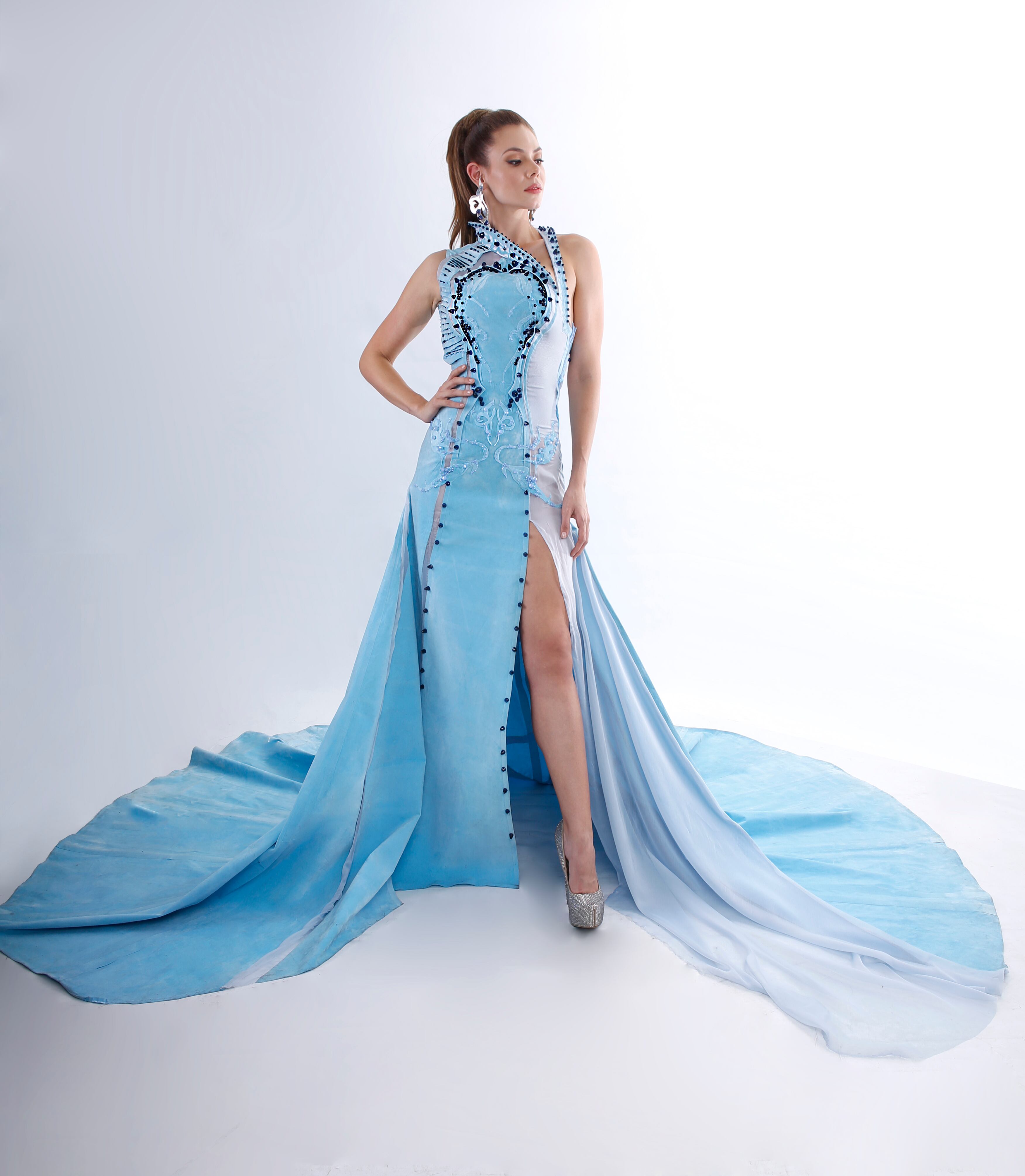 Se trata de un vestido que el diseñador Rob Chamaeleo diseñó a petición de Rodríguez, y el cual le cedió a modo de préstamo para su viaje a Filipinas, sede de Miss Universo. La valiosa prenda será exhibida posteriormente en un museo de la marca Chamaeleo.