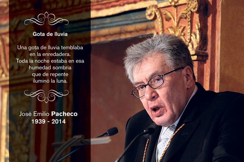 Para José Emilio Pacheco , el universo cabía en la concisión de una gota de agua. Para sus lectores, la inmensidad se encuentra en la delicada grandeza de sus humildes poemas. Pacheco, uno de los poetas y ensayistas más apreciados de México, falleció el domingo a los 74 años.