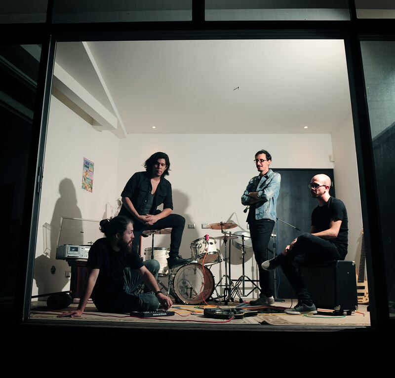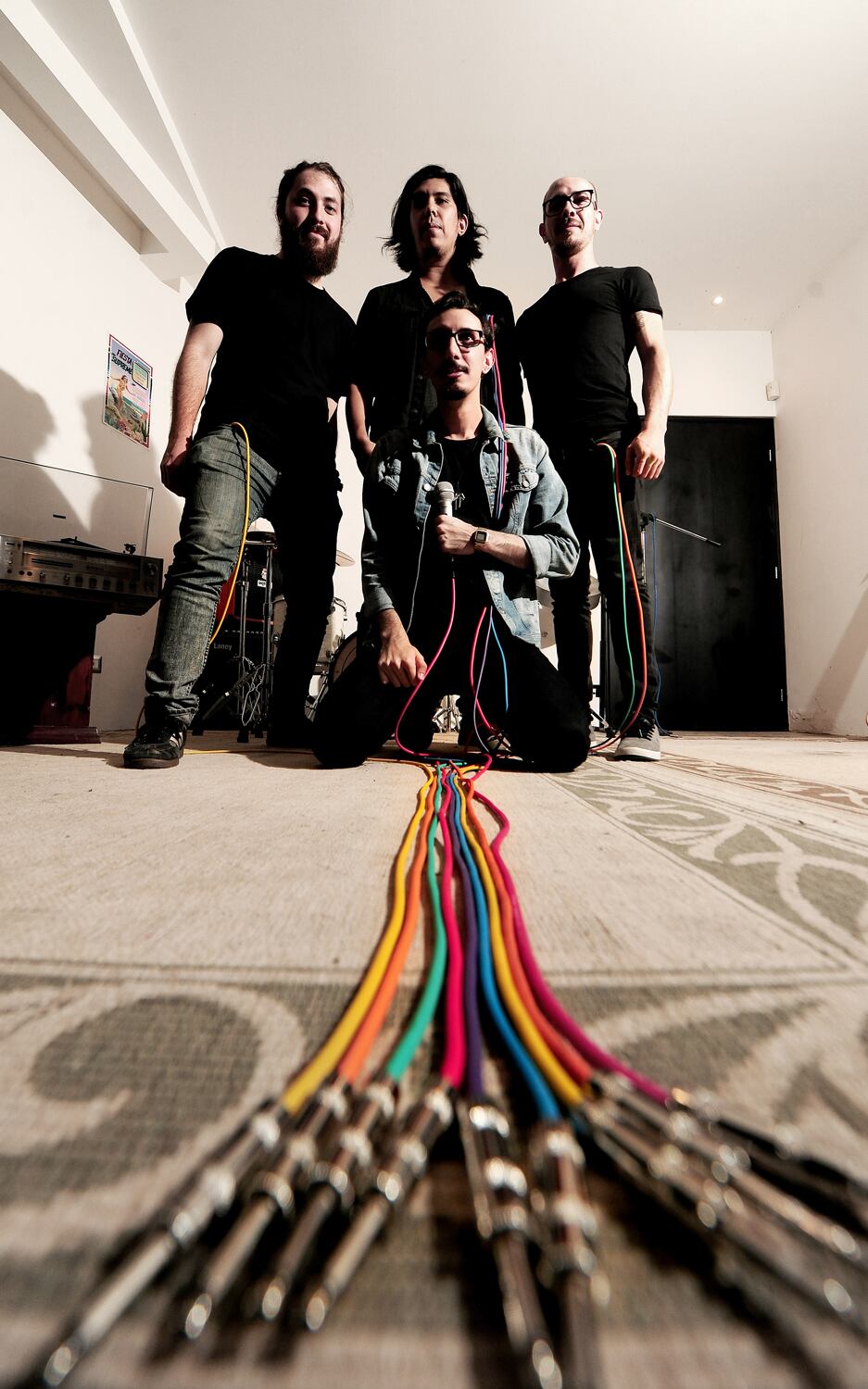 Sus compañeros lo secundan, según sus respectivas personalidades. Alejandro Pacheco, el Pana, canta y toca la guitarra en medio de ademanes ondulantes; Bryan Rothschild pronostica el movimiento de su bajo por medio del del torso y Alexandro Baviera, el Chino, suele demostrar celeridad en todos y cada uno de los golpes que le da a la batería.