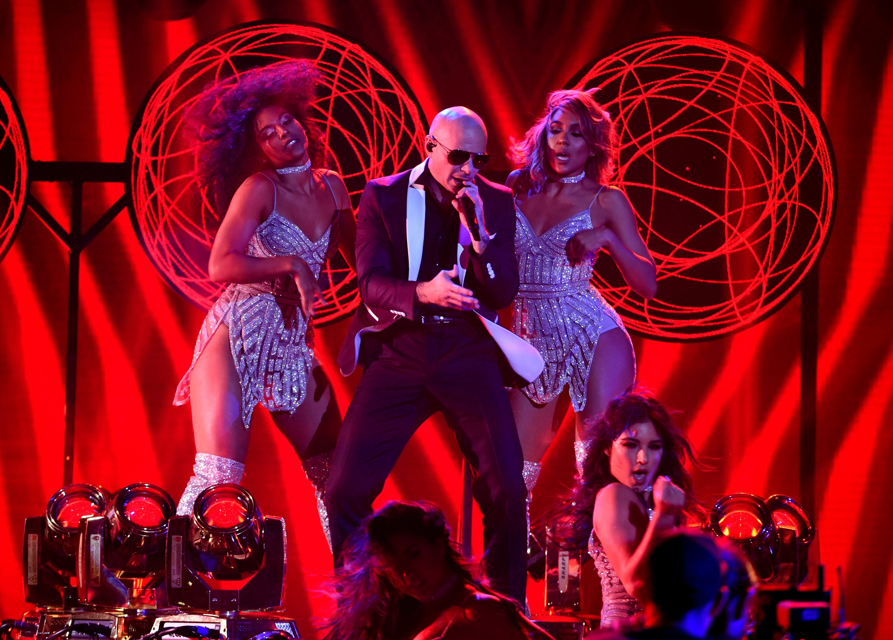 "Quiero que recuerden una cosa y lo digo en inglés para que lo escuche todo el mundo: nunca se olviden que los inmigrantes siguen siendo los Estados Unidos de América", expresó Pitbull, quien aceptó el reconocimiento de manos de su amigo Enrique Iglesias tras interpretar un popurrí de algunos de sus grandes éxitos acompañado por Fifth Harmony.