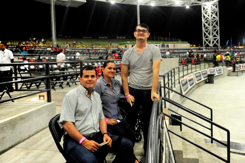 Familia. Por primera vez, Óscar Corrales, Sonia Pacheco y su hijo, Óscar José Corrales, asistieron juntos a un concierto de Juan Luis Guerra. Los tres no ocultaban su emoción de estar casi en primera fila. Melissa Fernández. (Melissa Fernandez Silva)