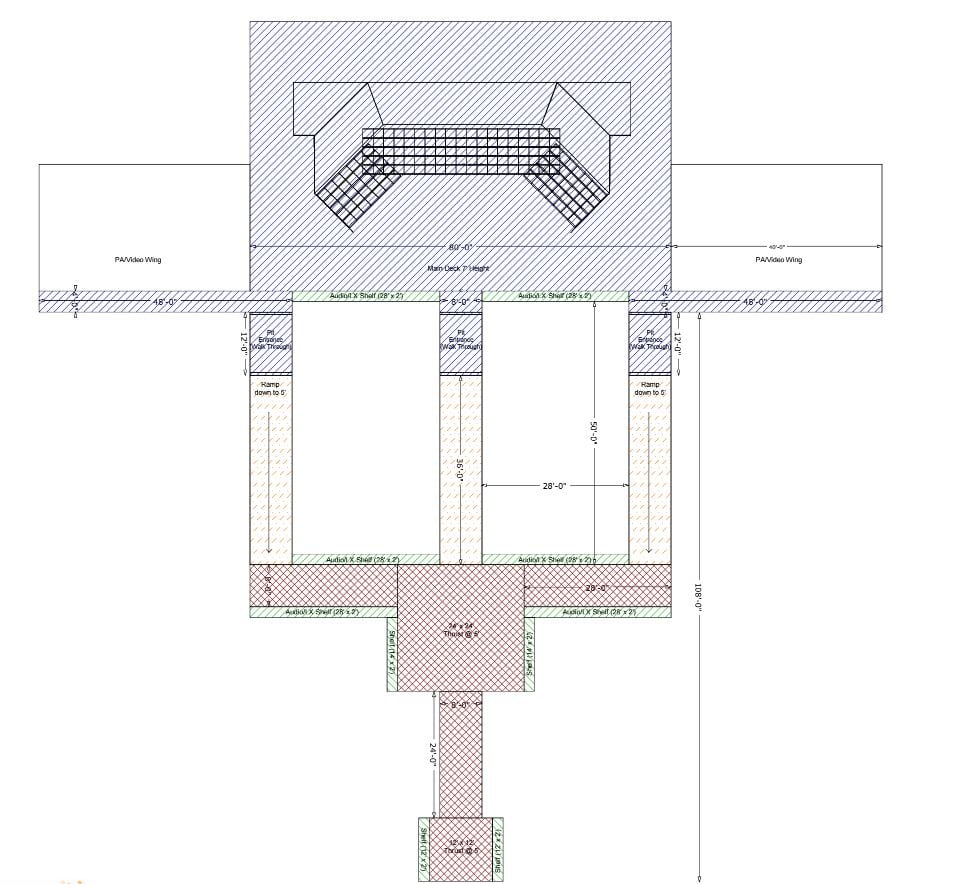 La megatarima principal mide 24 metros de ancho y tendrá un fondo de 15 metros, para albergar a los músicos y equipo técnico que acompaña a Justin Bieber.