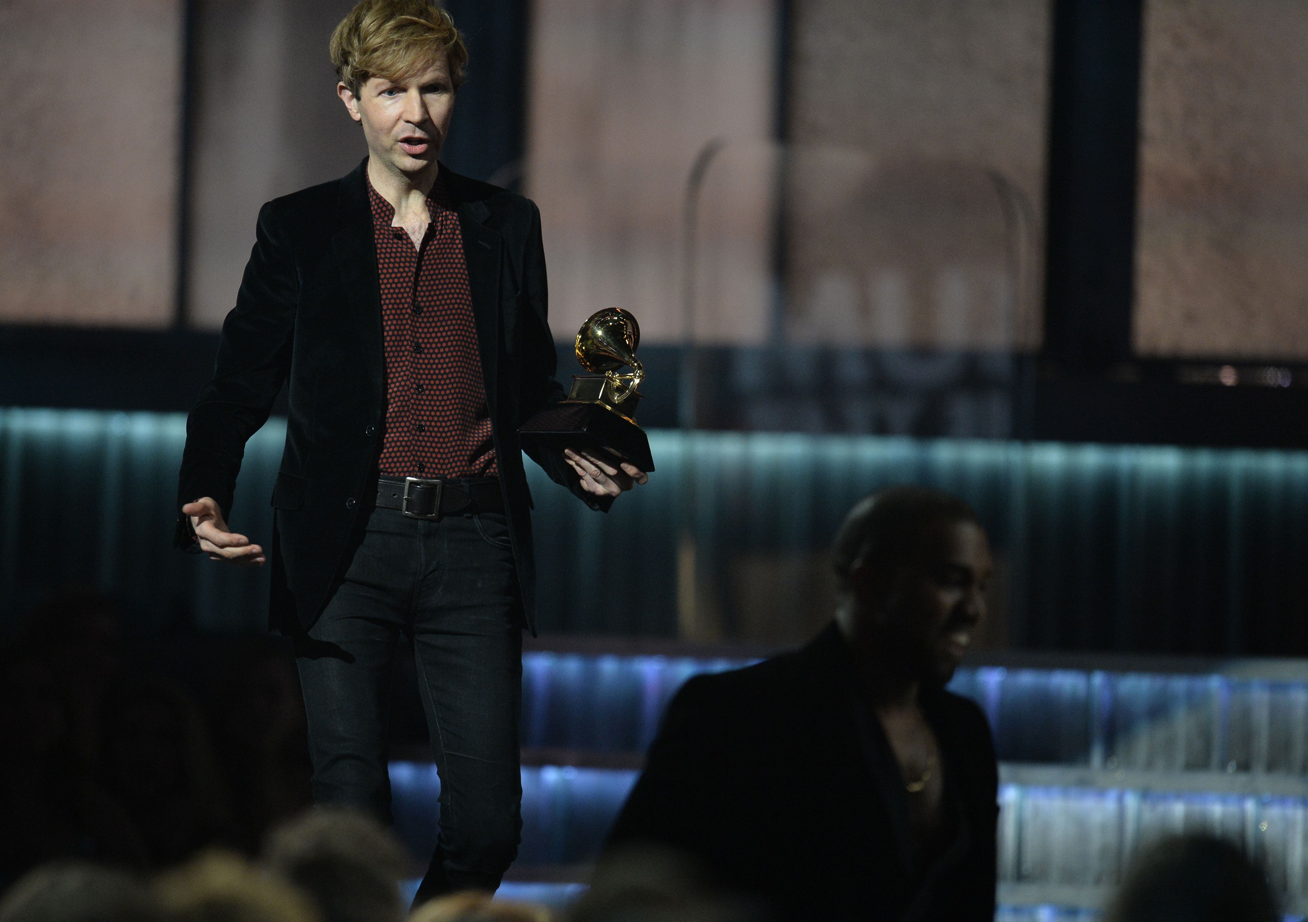El roquero Beck se llevó sorpresivamente uno de los mayores galardones de la noche, derrotando a la reina del R&B Beyoncé, a Ed Sheeran, Sam Smith y Pharrell Williams.