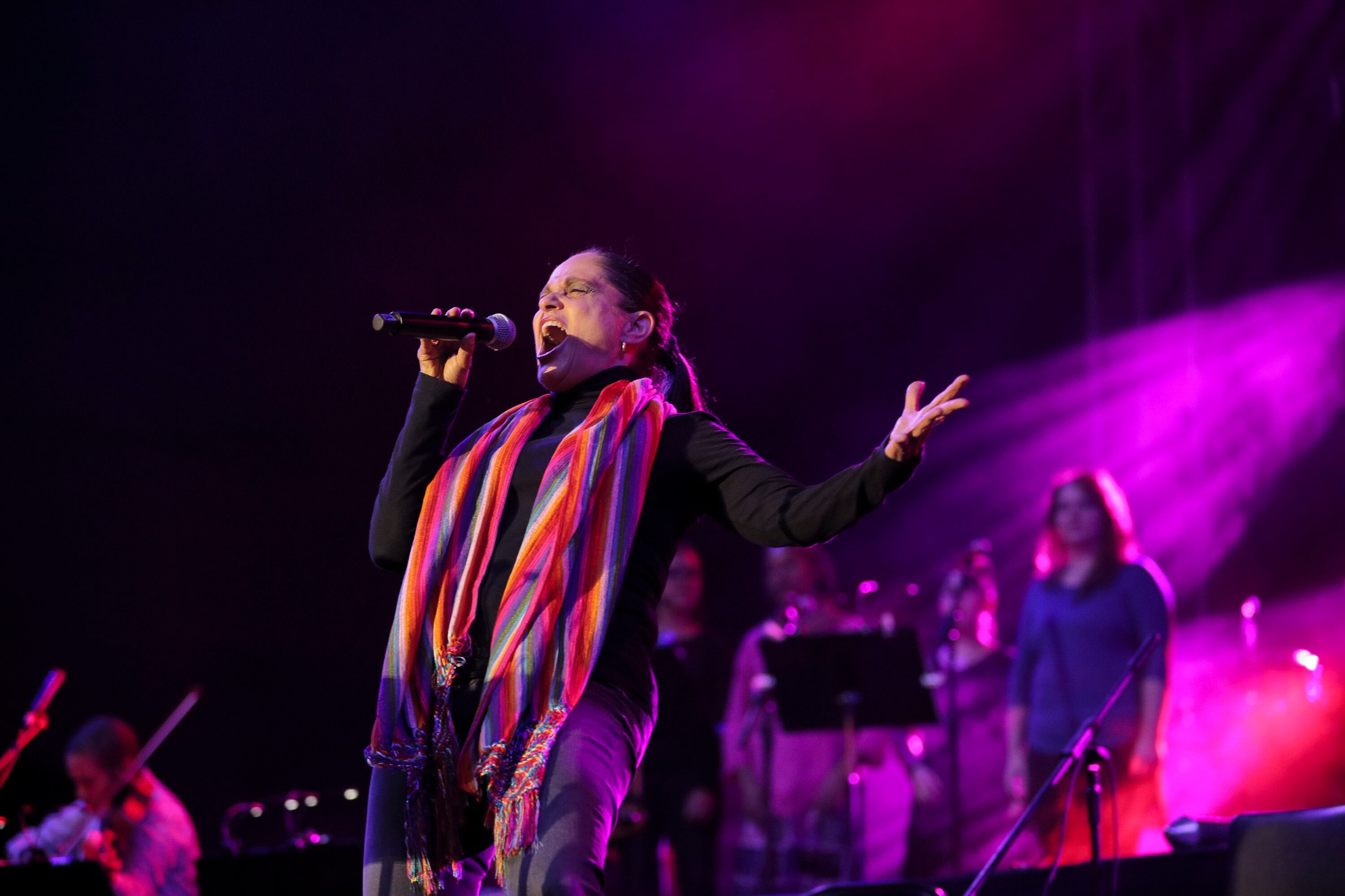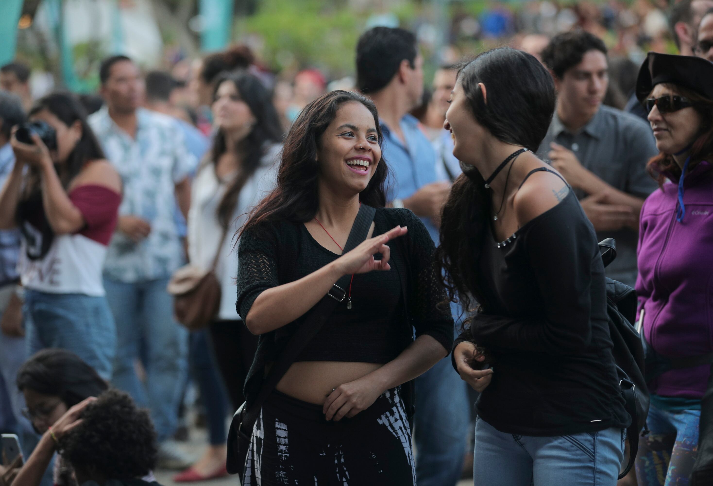 A las 7 p. m., la agrupación nacional Claroscuro subió a la tarima de la Plaza de la Democracia para llevar con su música un mensaje feminista y de promoción de los derechos de la mujer.