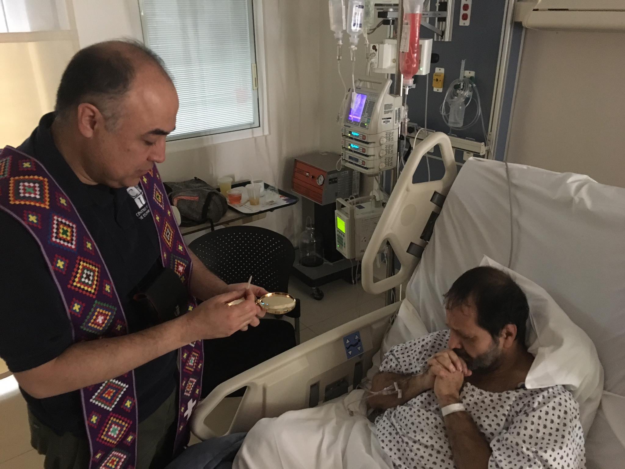 Valverde compartió en su Facebook oficial –medio que está utilizando para informar sobre su salud a sus seguidores– una serie de fotografías en las que contó: "Hoy recibimos a Jesús en nuestro lecho de enfermedad. Gracias al Padre Jorge Ochoa SJ por su amistad y generosidad".