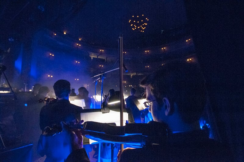 Cuando los músicos aparecieron en el escenario, gritos iban y venían. Lo que se robó la atención y provocó las carcajadas fue cuando una violinista entró de última al escenario con un traje rosado y una cola alta de medio lado.