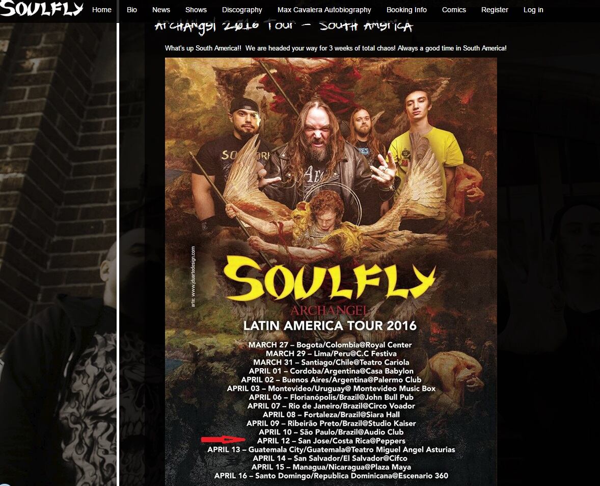 La banda Soulfly informó de su visita a Costa Rica en su página oficial. (Captura de pantalla)