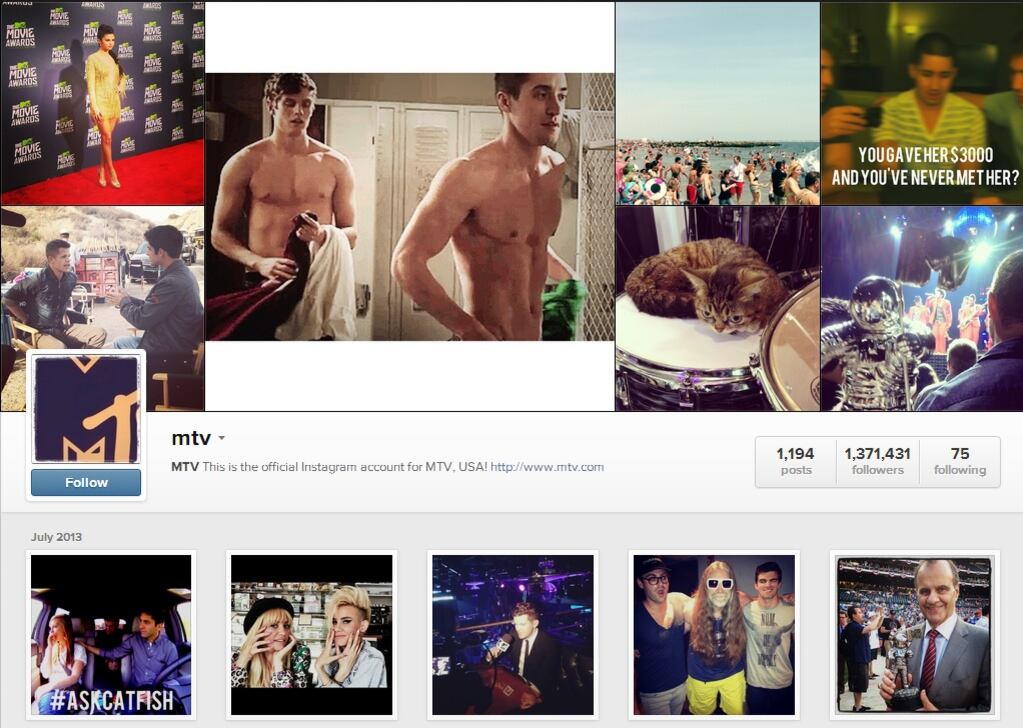 Así se ve el perfil de MTV en la red social Instagram. (instagram.com/mtv)