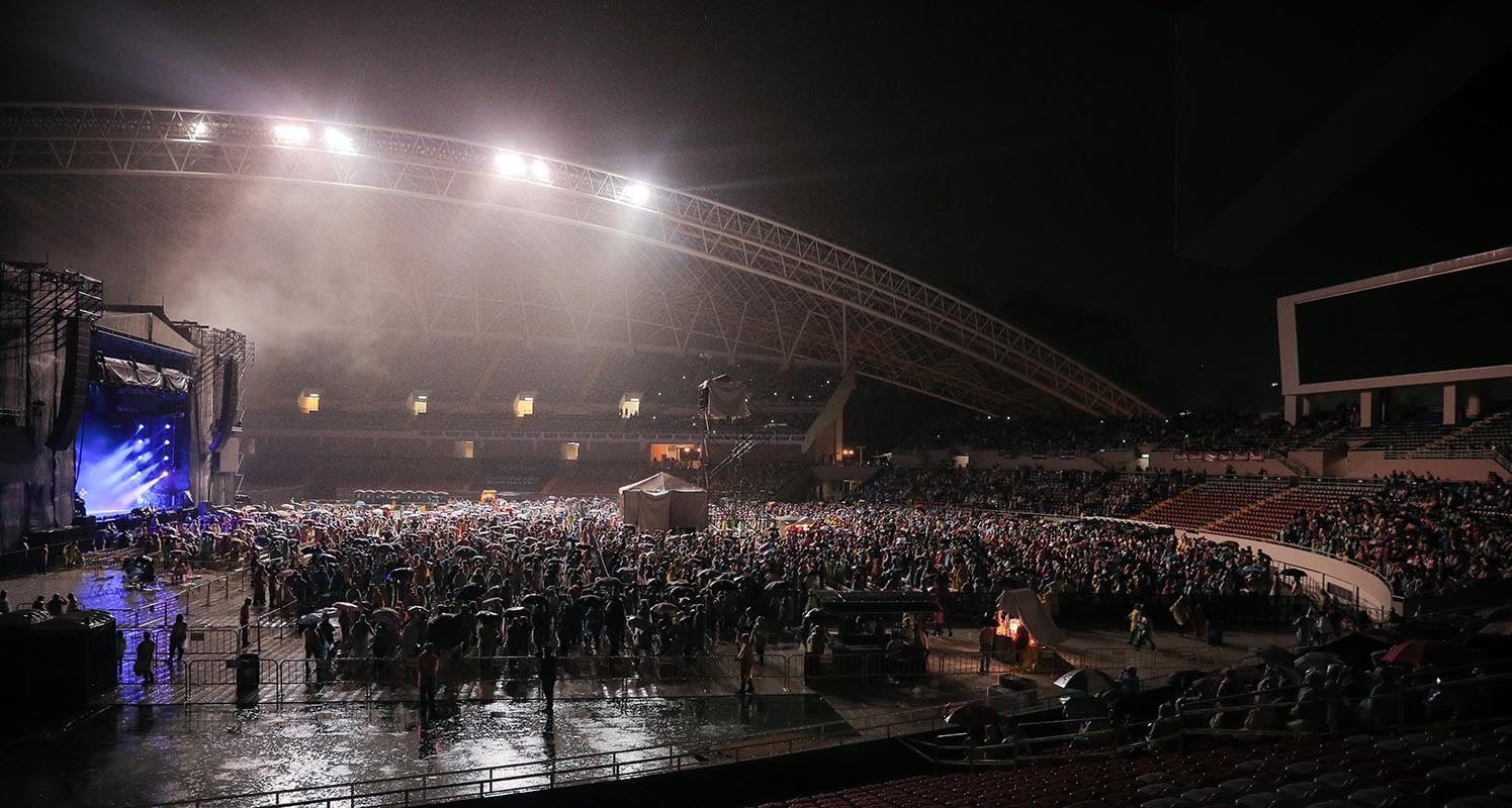 Llovía tanto la noche del domingo que el suelo del Estadio Nacional semejaba a un lago, en el cual los niños y adolescentes chapoteaban con emoción.
