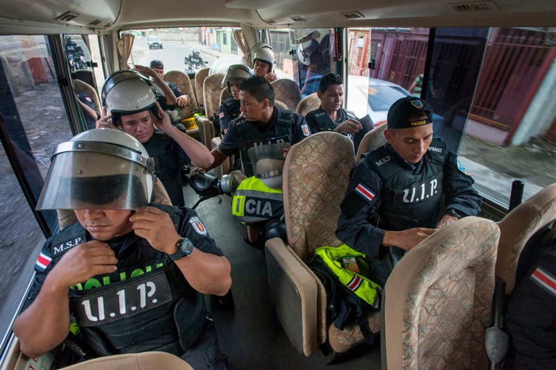 Los integrantes de la UIP no perciben más beneficios que un agente regular de la Policía; el salario es el mismo: ¢325.000 al mes, y las jornadas son similares: trabajan ocho días seguidos –en los que duermen en las delegaciones– y luego tienen ocho días libres.