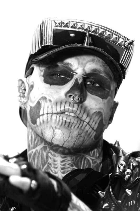 Fue a sus 19 años cuando conoció al artista del tatuaje Frank Lewis quien se comprometió con Rick a cumplir su visión de la vida. Durante los siguientes seis años, Lewis fue quien pintó la mayoría de los tatuajes que posee Zombie y, aunque él haya dicho que ha gastado más en drogas que en pagar por los tatuajes, el monto cercano del precio del arte que lleva en su piel supera los $20 mil.