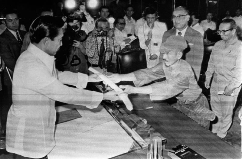 Hiroo Onoda finalizó su lucha cuando llegó a capitular frente al presidente de Filipinas, Ferdinand Marcos, en 1974. Todavía en su uniforme rasgado por la selva, el teniente apeló al honor japonés cultivado durante milenios y se rindió del único modo que supo.