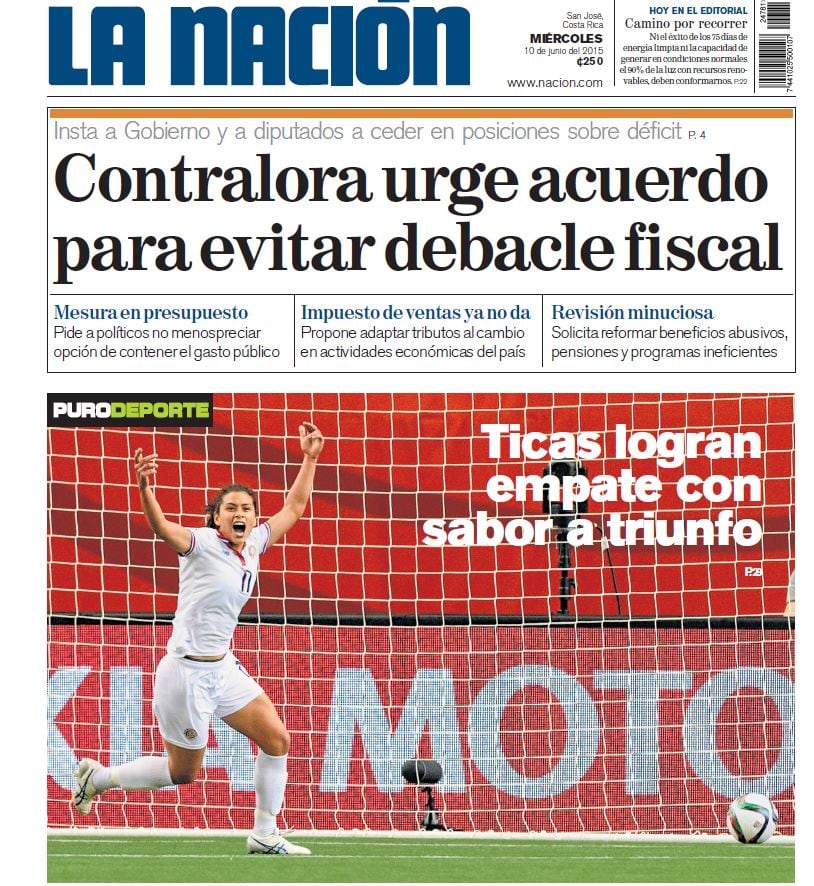 El 10 de junio de 2015, en la apertura de Puro Deporte se leía: “Un punto labrado por el corazón de unas guerreras” y también se publicó una nota destacando a la arquera: “Dinnia, la muralla tica contra el juego aéreo”.